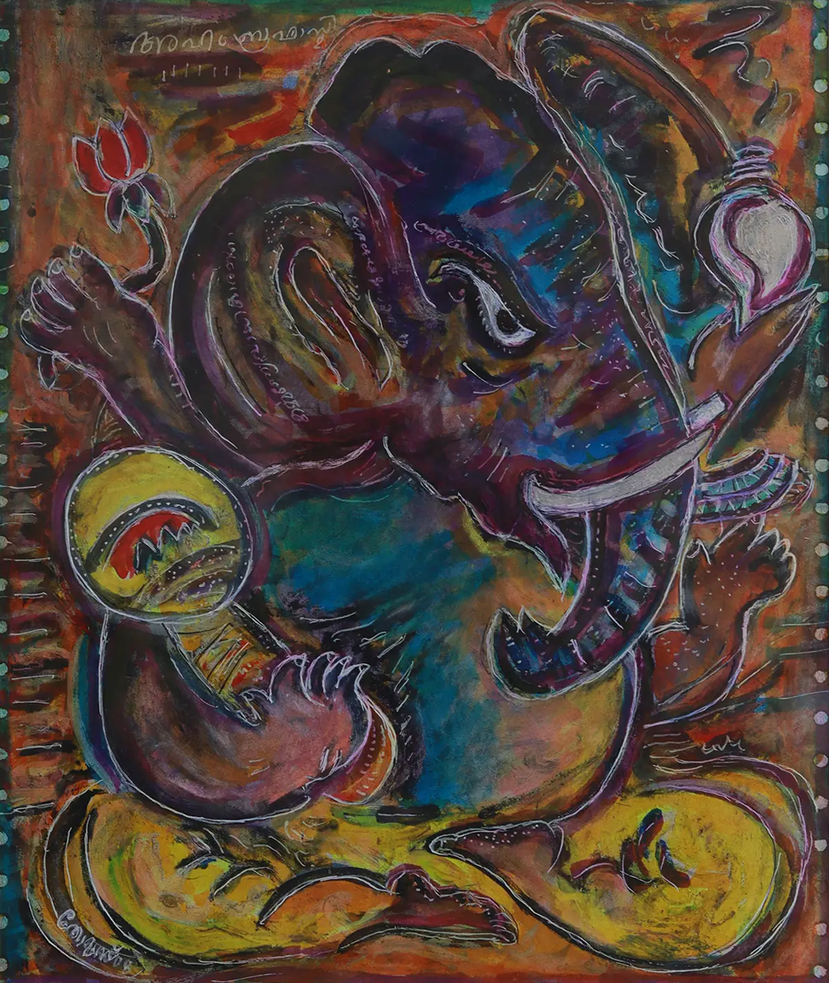 "After Manorama Manipur" depicts the powerful protest of Manipuri women, using bold strokes and evocative forms to convey courage, defiance, and resilience.