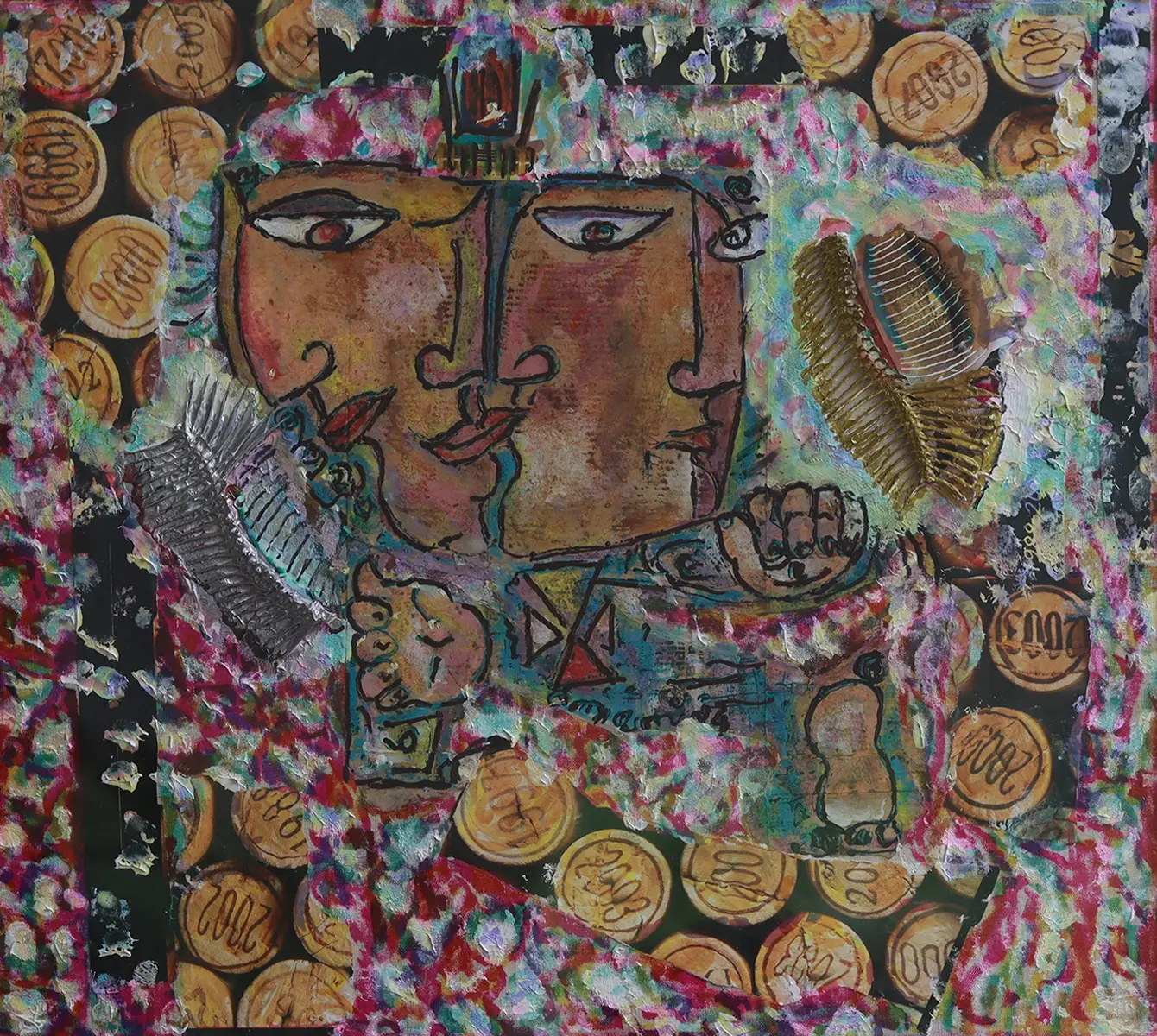 Medium: Mixed media on dot matrix print | Size: 16x14 inch